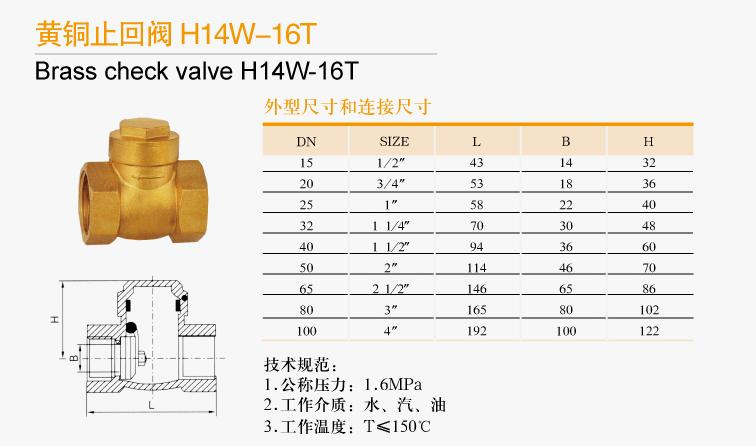 黃銅止回閥H14W-16T技術(shù)規(guī)范: